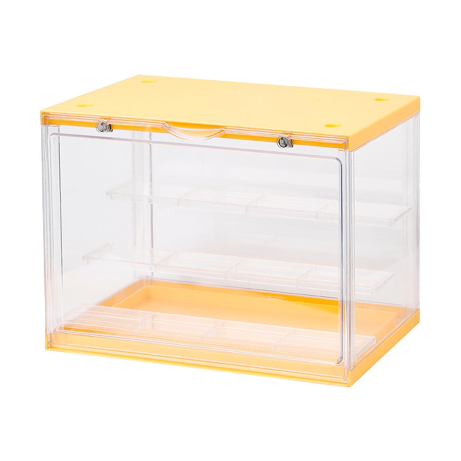 3-Layer Action Figure Display Case Dustproof Showcase Doll Toys Shelf Yellow