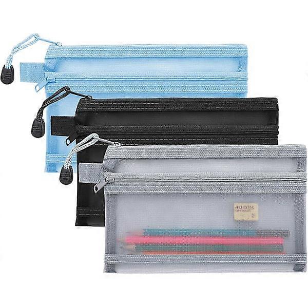 3 pcs Pencil Case, Double Layer Mesh Zipper Pencil Pouch Multifunctional
