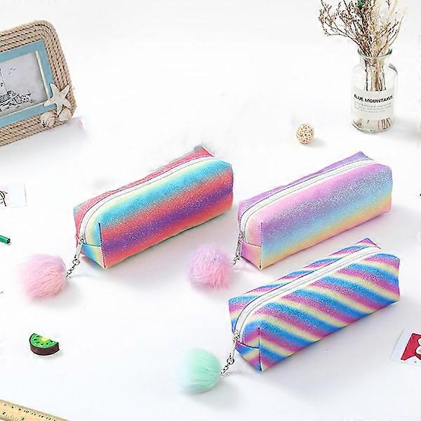3 pcs pencil case with large capacity 3 pcs rainbow glitter