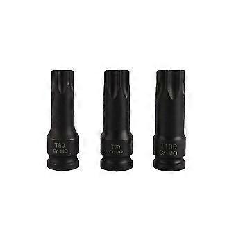 3 Pieces Of 1/2 T80 T90 T100 Hexagonal Torx Socket Tool Set Pneumatic Wrench Fittings