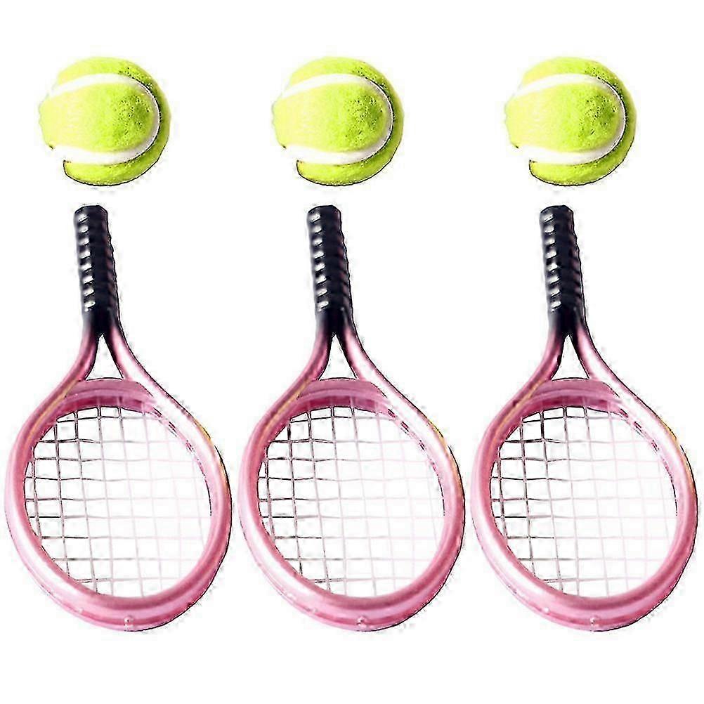 3 Sets of Miniature House Tennis with Rackets and Balls - Ideal for Photography and Display