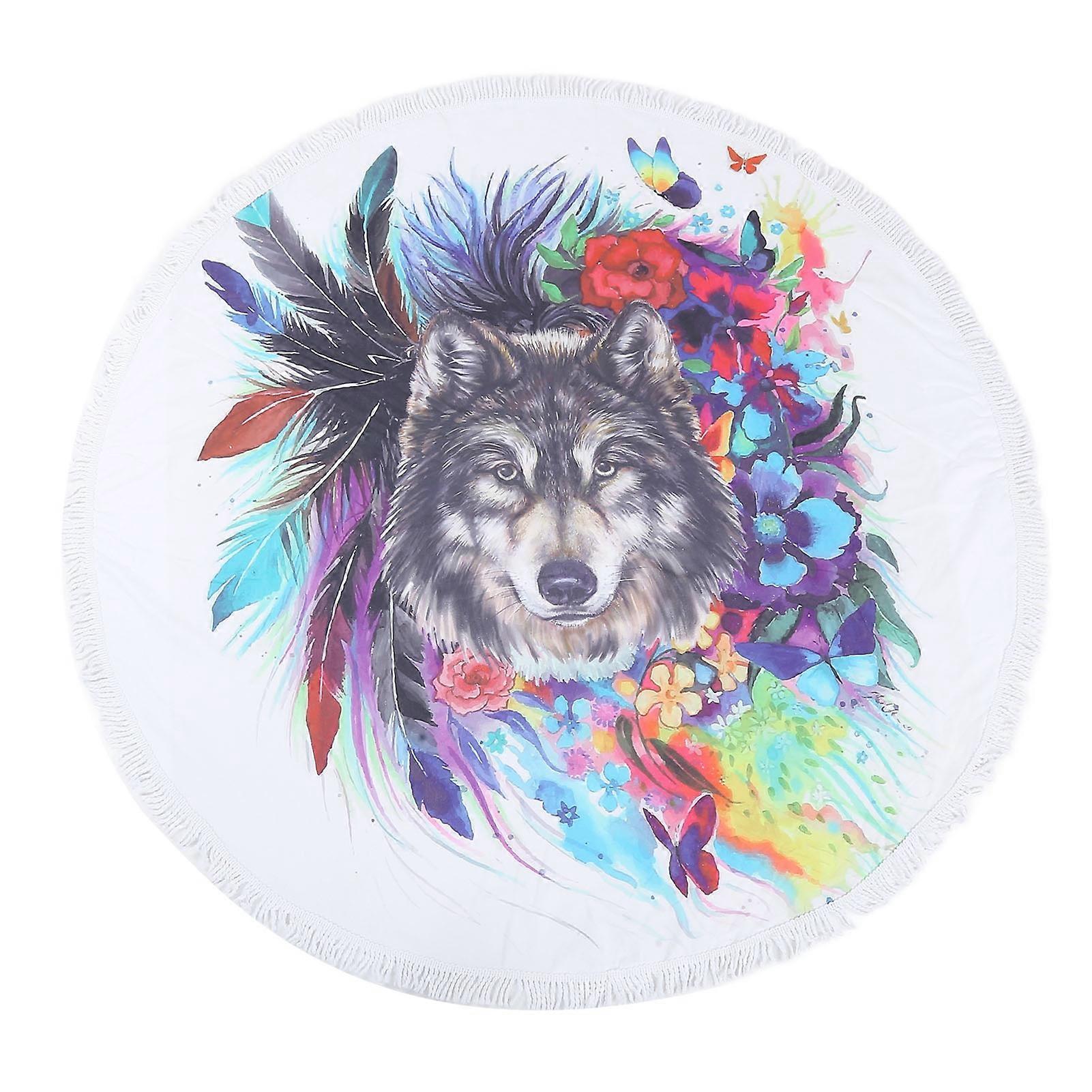 Round Beach Towel Blanket Circular Beach Tassels Blanket Oversized Picnic Mat for Kids3#