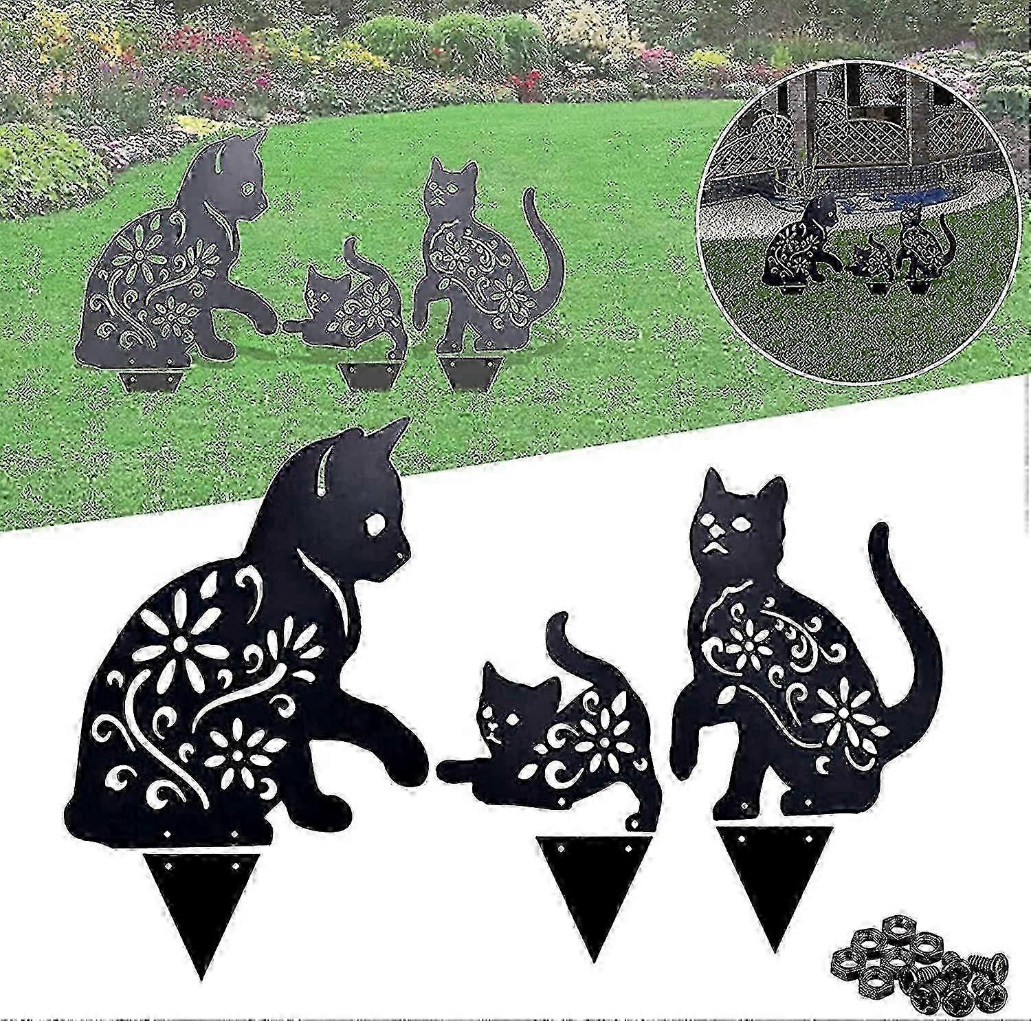 Rust Decoration Cat, Rust Decoration For Garden Cat, Plug Cat Rust Decoration, High Quality & Weatherproof, 3 Pieces