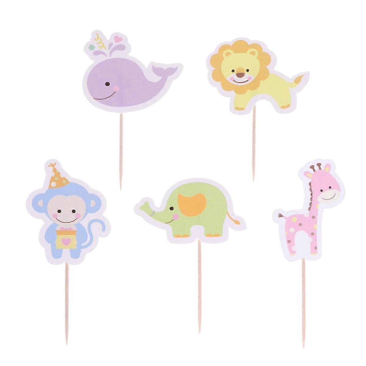 30pcs Zoo Series Cake Toppers Animal Cupcake Muffin Fruit Picks for Birthday Party