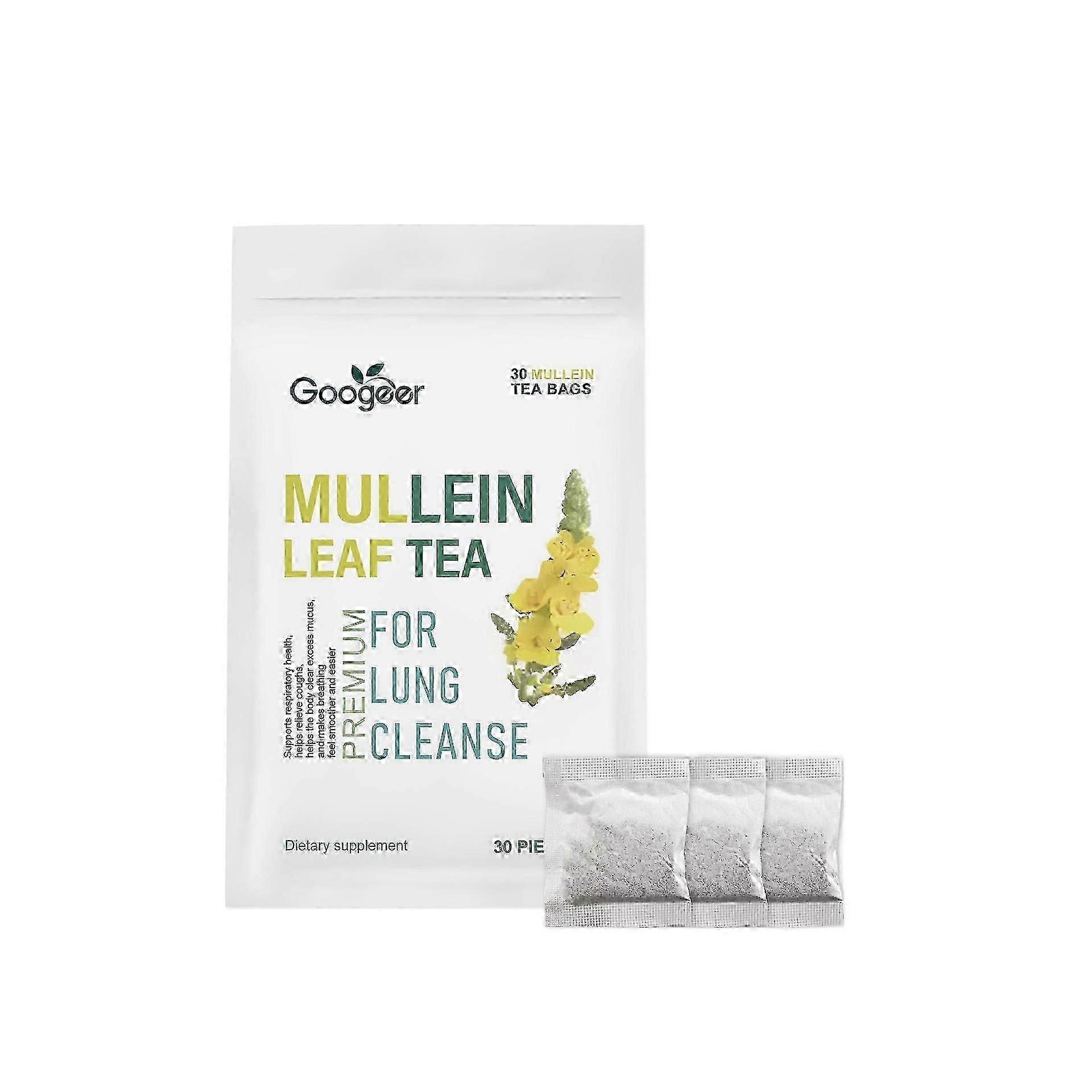 Mullein Leaf Tea - Natural Lung Health SupportSupport your respiratory health naturally with Mullein Leaf Tea, a pharmacist-formulated herbal blend designed to promote easier breathing and soothe a sore throat. This unique tea supports lung cleansing, detoxifies mucus, and provides congestion relief. It is caffeine-free, making it a safe and gentle option for individuals with respiratory issues or allergies.Innovative Compression ProcessTo ensure optimal flavor and quick brewing, we use an innovative compression process. We grind 18 types of herbs, including mullein leaves and forsythia suspensa leaves, into fine powders and compress them into granules. These granules retain the concentrated essence of mullein leaf, offering you the best flavor in a short time. The tea is packaged with double-layer independent sealed packaging, making it convenient for use at home or on-the-go.Product UpgradeOur Lung Clearing Tea is more popular than ever. We have enhanced the formula, expanding from 11 herbs to 18 herbs. The quantity has also been upgraded from 20 bags to 30 bags, with a shift from box packaging to easy-to-use bags.Directions for UseFor a soothing experience, steep one tea bag in hot water for 3-5 minutes, then remove the tea bag. Add honey, sugar, or your preferred herbs to enhance the flavor. Mullein Leaf Tea, made with all-natural herbal ingredients, is perfect for activities like meditation, pre-bedtime relaxation, or after exercise. Its a natural way to support your breathing and overall lung health.