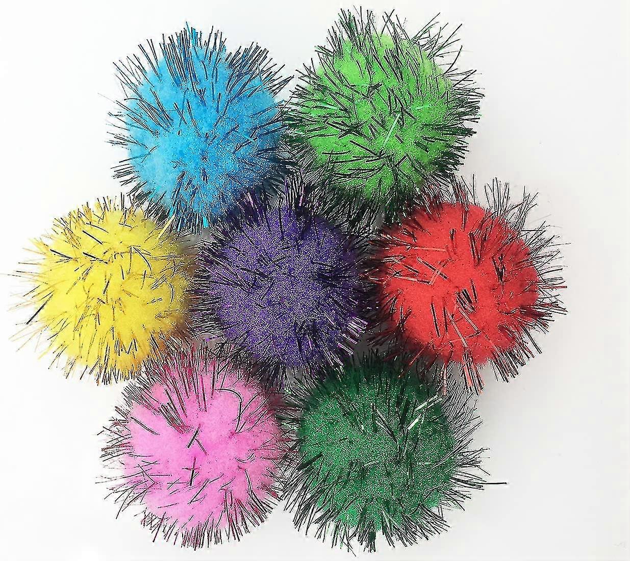 30 Piece Assorted Color Sparkle Balls Cat's Favorite Toy Tinsel Pom Poms Glitter