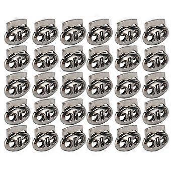 30pcs Metal Cord Lock End Toggle Double Hole Spring Stopper Fastener Slider Toggles End for Drawstrings Shoelaces Backpack Bags Silver