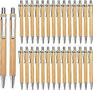 30 PCS Bamboo Ballpoint Pen Set, Retractable Vintage Creative Office & School Writing Instruments, 1.0mm Black Ink