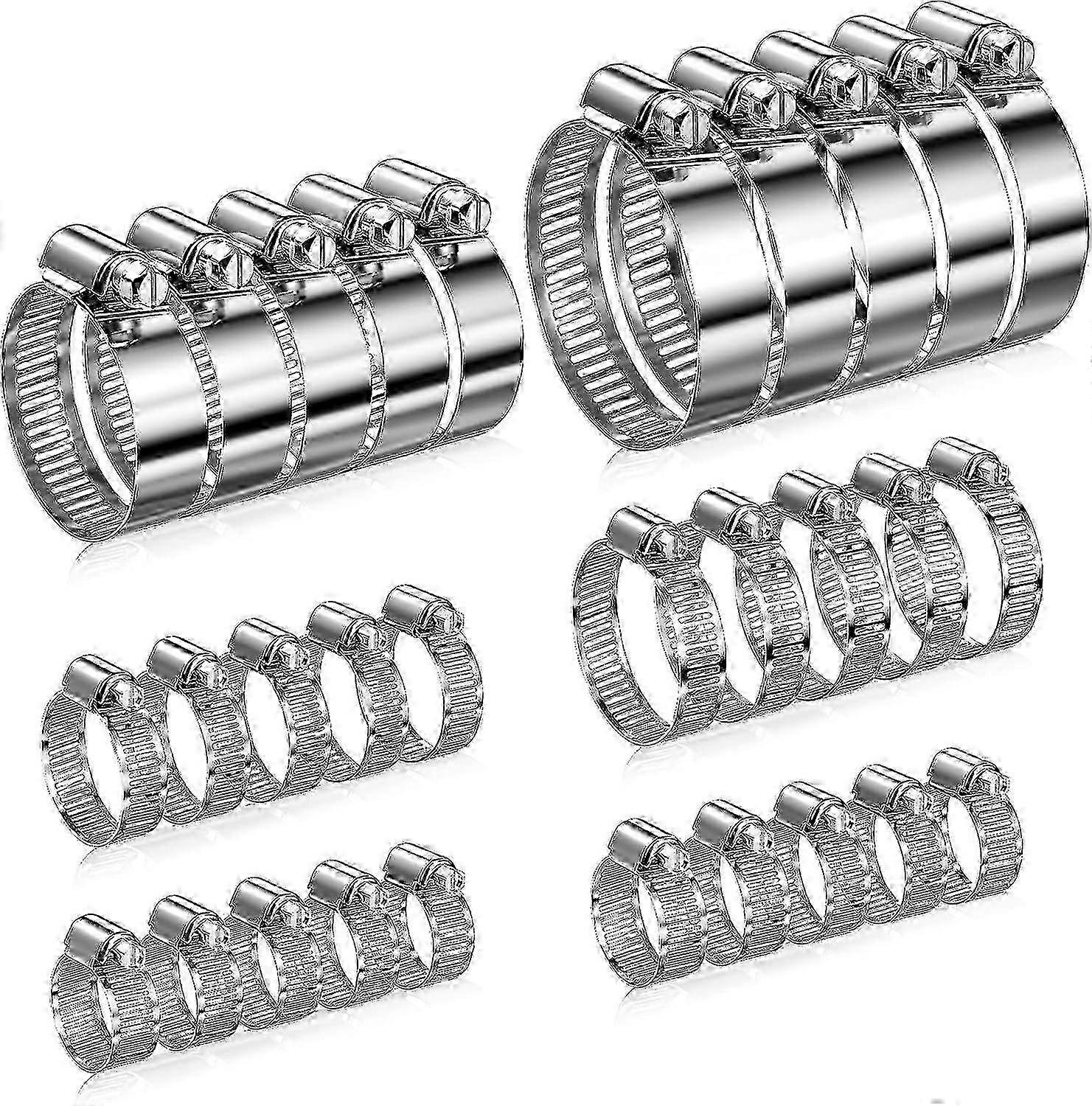 30 Pieces Stainless Steel Hose Clamps, 6 Sizes 6-51mm Extra Strong, Adjustable, For Pipes, Gas, Water, Car, Washing Machine, Garden