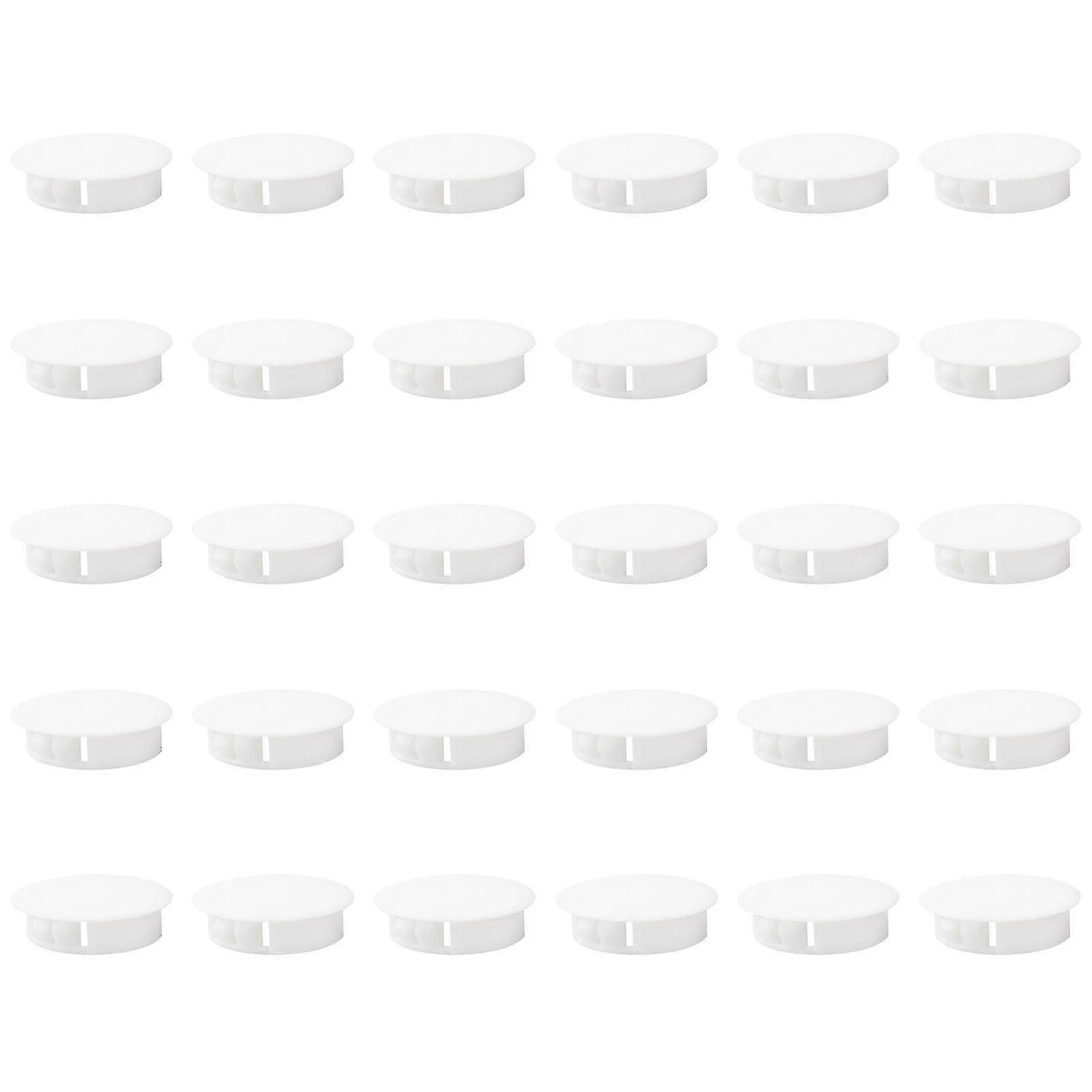 30Pcs White Plastic Hole Plugs 20mm - Flush Mount Screw Caps for Kitchen Cabinets & Furniture Panels