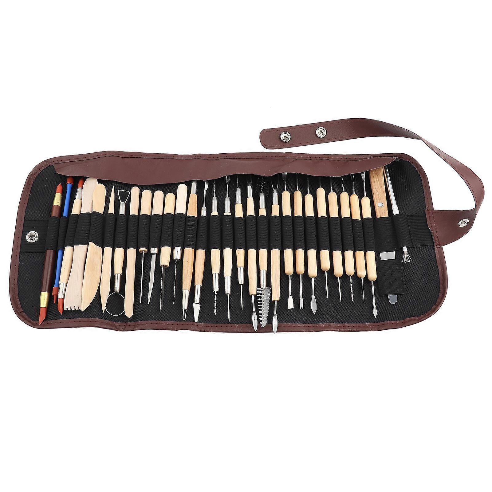 30Pcs Wooden Wax Clay Pottery Carving Modeling Sculpture DIY Craft Tool With Rolling Cloth Bag