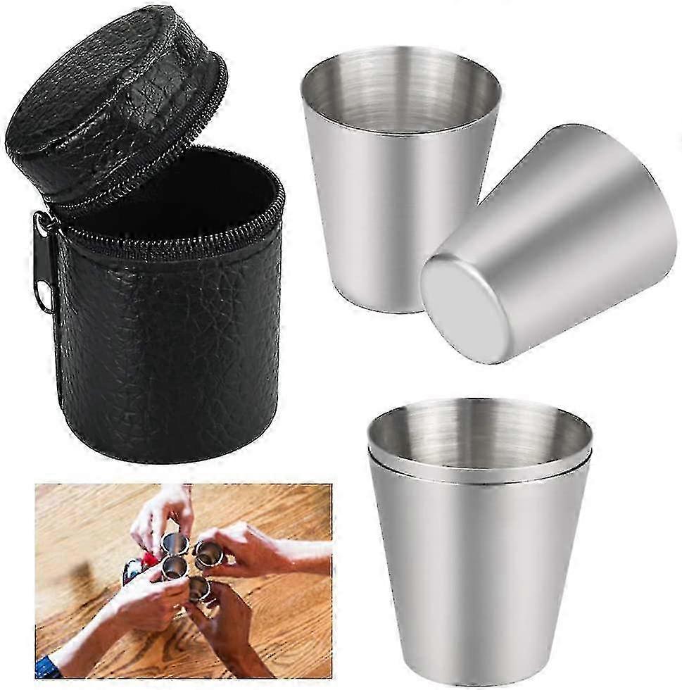 30ml stainless steel thickened outdoor wine glass with PU leather cup bag
