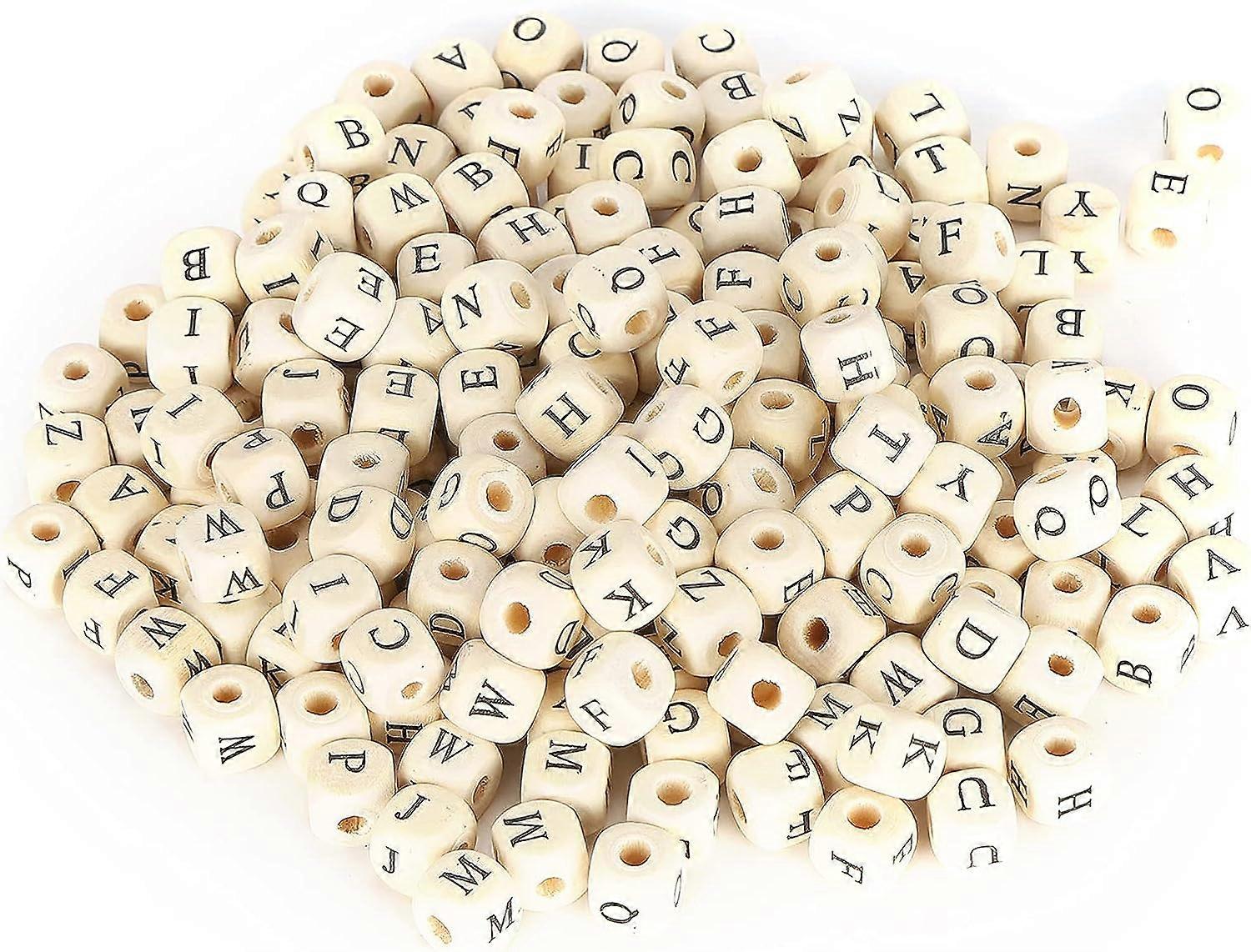 300pcs 10mm Wooden Beads for Crafts, Cube Engraved Letter Spacer DIY Jewelry Making Accessories Christmas Tree Garland Making for Crafts Necklace