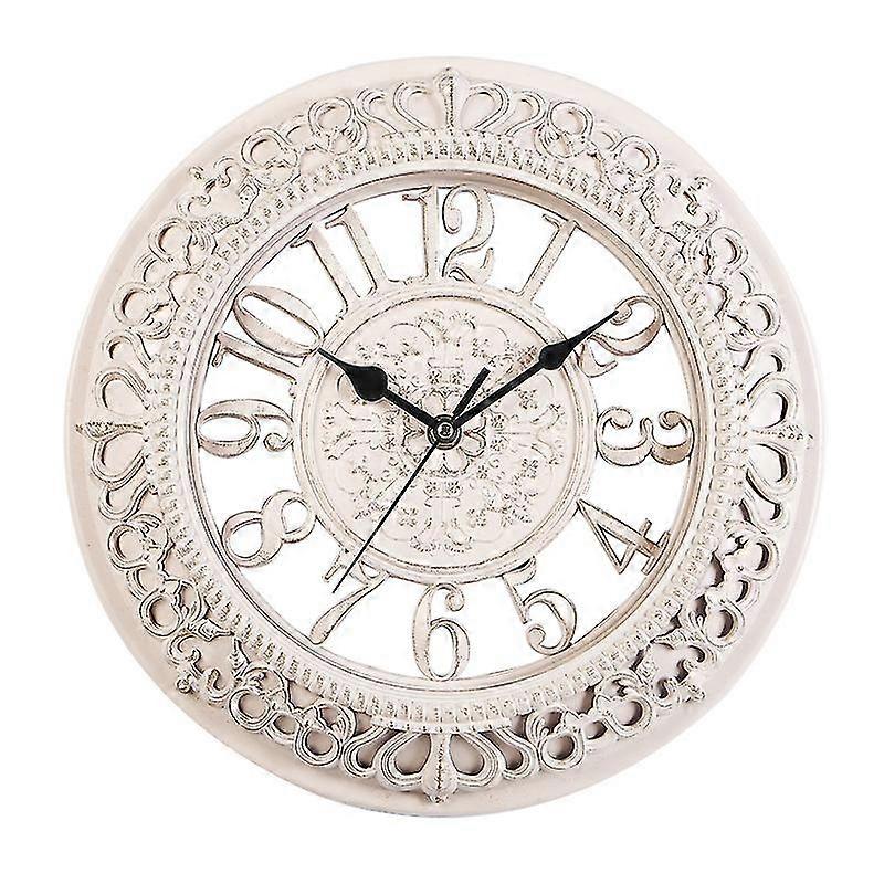 30.5*30.5cm White Round Plastic Non-ticking Silent Wall Clock, Battery Operated, For Living Room, Bedroom, Kitchen, Patio, Garden, European Style Crea