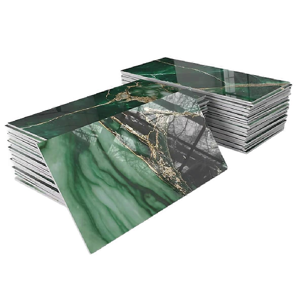 32Pcs Thick PET Glossy Subway Tile Sticker,4in X 8in Peel and Stick Backsplash Wall Tiles,Golden Ve