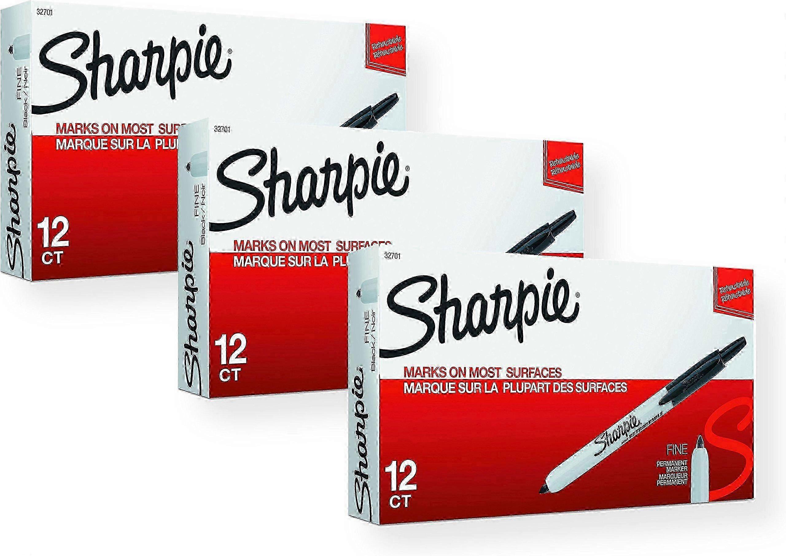 32701 Retractable Permanent Markers, Fine Point, Black, 36 Count (3 Boxes of 12 Markers each Box)