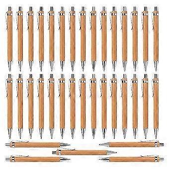 35 Pcs Office and School Supplies Sustainable Pen Bamboo Retractable Ballpoint Pen Writing Tool(Bla