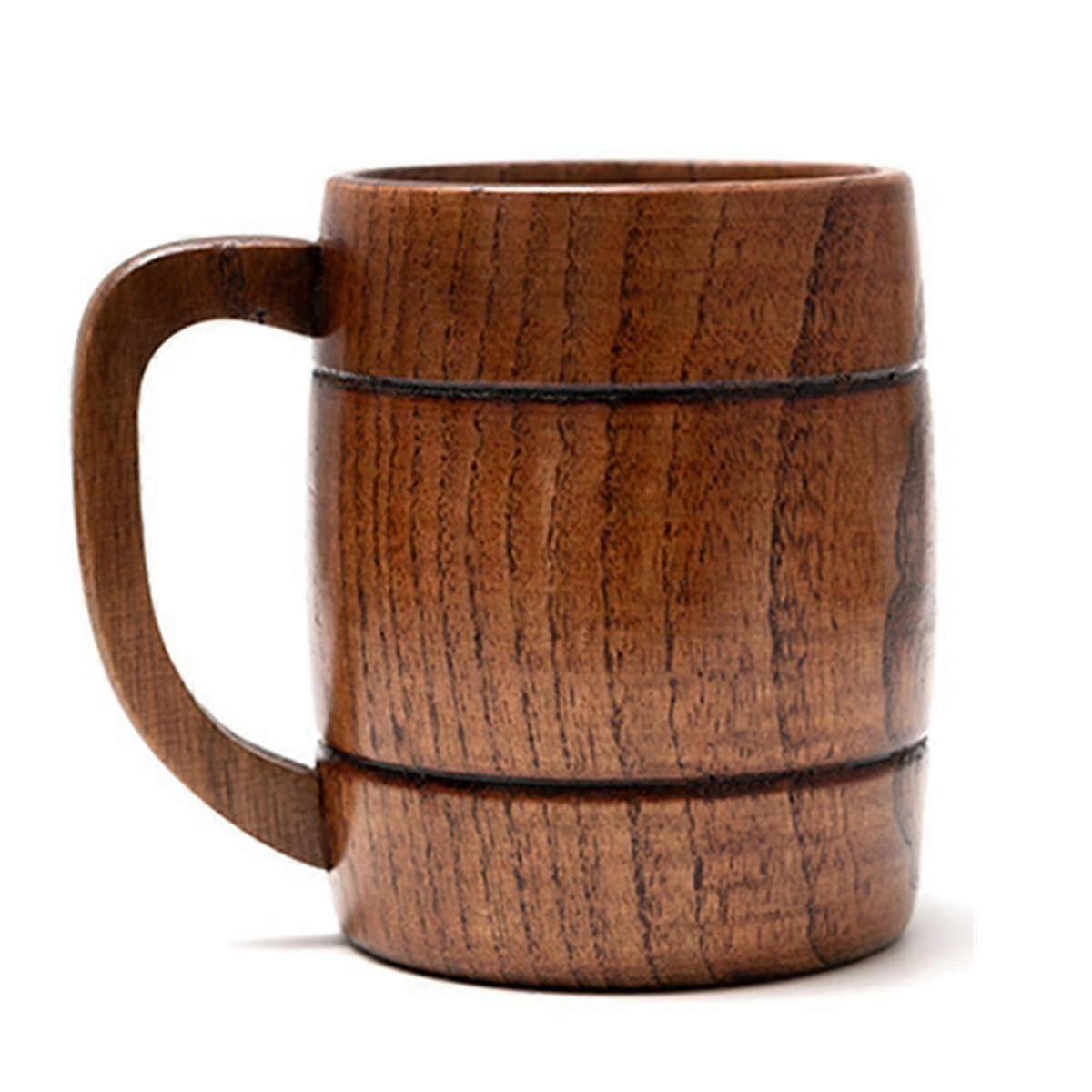 350Ml/12Oz Wooden Beer Mugs,Top Grade Natural Handmade Retro Brown Wood Cup with Handle for Tea Cof