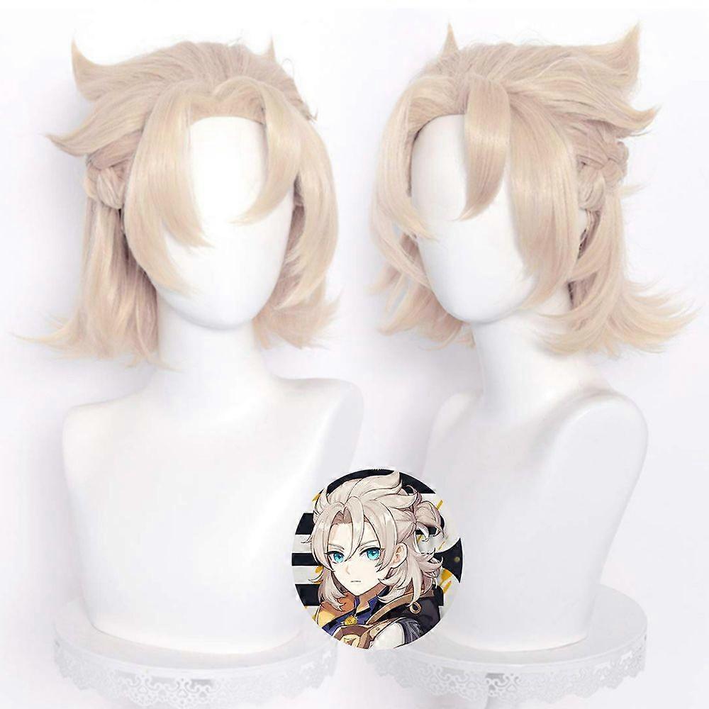 Genshin Impact Albedo Cosplay Wig 35cm Short Linen Heat Resistant Synthetic Hair Wigs Halloween Anime Wigs
