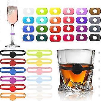 36 Pcs Wine Glass Charms Markers Colorful Silicone Glass Markers, Glass Cup Wine Glass Bottle Strip Tag Marker For Drink Glass Bottle, Champagne Flute