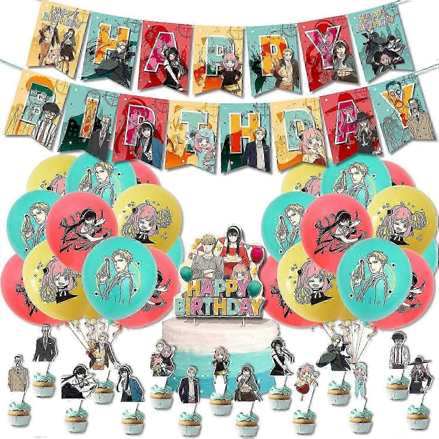 37Pcs Spy x Family Theme Birthday Party Supplies Including Happy Birthday Banner, Cake Topper, Cupca