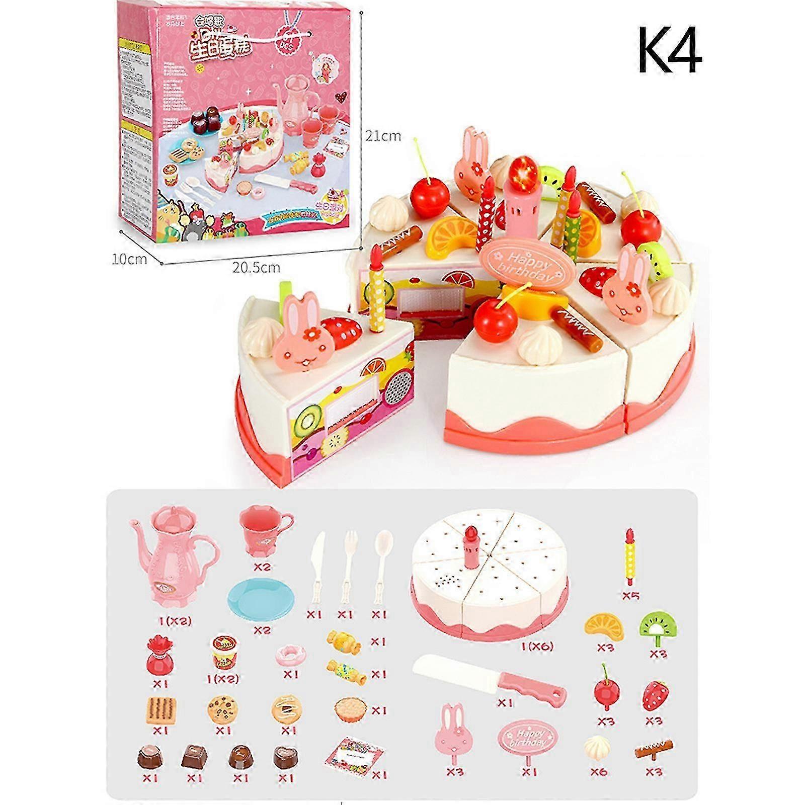 Multiple Cake And Tea Toy Accessories - A variety of ways to play, a variety of accessories,includeCups, Plates,Donut,Chocolate, Cookies, Spoon, Fork, Knife, Teapot and Tea bag, Cake, Cake Cutter,Other Cake Decorations etc.Let baby assemble their favorite birthday. Happy Birthday To you - Press the birthday candle, the light will go on and sing "Happy Birthday to You". Play with your friends and blow out the candle, the music and light will go off. (The music style can sing, the light style can't sing). DIY Birthday Cake - Decorating cake with cute fruits (cherry, strawberry, orange, kiwi), Your kids can DIY the pretend cake set with themselves or have fun with their little partners.The cake comes with small hook & loop attachments inside so the cake can be sliced and served like a real cake and then put back together for easy clean up and storage.The knife makes the cutting progress through hook & loop feels realistic. After the children cut the cake can be re-glued cake together. Non-toxic materials - Made of environmentally-friendly ABS materials,All parts are free from sharp edges polishing, so they are safe durable and suitable for children to play. Best gift choice - The pink birthday cake can be given as a birthday/christmas/children's day/halloween gift to kids. Children can play with their friends to enhance interaction and deepen friendship. Feature When press the big candle,the candle on the cake will shine. and play the birthday song When the electronic candle is blown off, there will be cheers in the air. A variety of cute accessories to the DIY free mix with the child's imagination, Children's simulation cake toys can cultivate children's ability to move hands, grasp, interest, and intelligence, and strengthen children's ability to distinguish things and hand-eye coordination. It is a very good interactive toy!