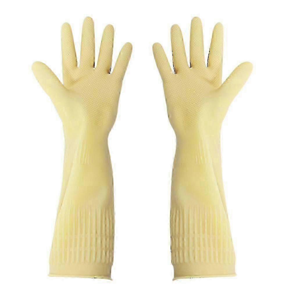 38cm Rubber Gloves Reusable Long Rubber Gloves Dishwashing Gloves For Kitchen Gardening(milky,l)