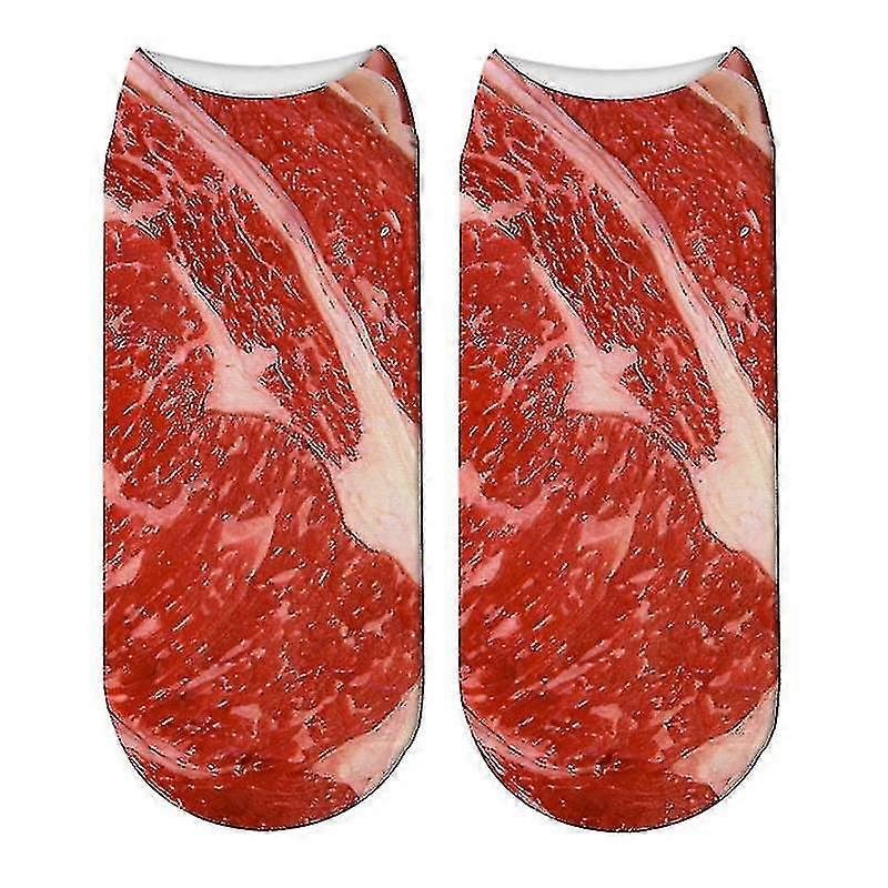 3d Digital Printing Meat Socks 1 Pair Beef Pork Short Sock Funny Simulation Socks Unisex For Men Women Teens Halloween Christmas Costume Supplies A