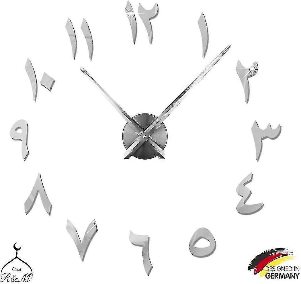 3d Arabic Diy Mute Wall Clock Home Decor Gift Living Room Home Office 2 Year Warranty (silver)