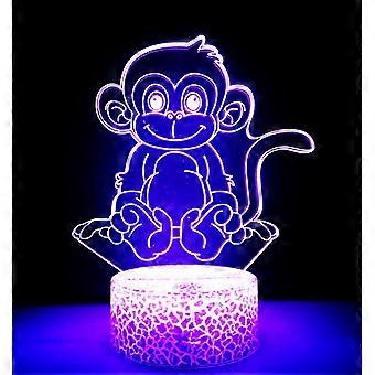 3D Monkey Night Light Lamp Illusion 7 Color Changing Touch Table Desk Decoration Lamps Acrylic Flat ABS Base USB Cable Birthday Gift Toys