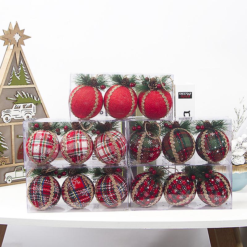 3pcs Red Plaid Painted Balls Christmas Tree Ornament Gift Pvc Ball Hanging Decor