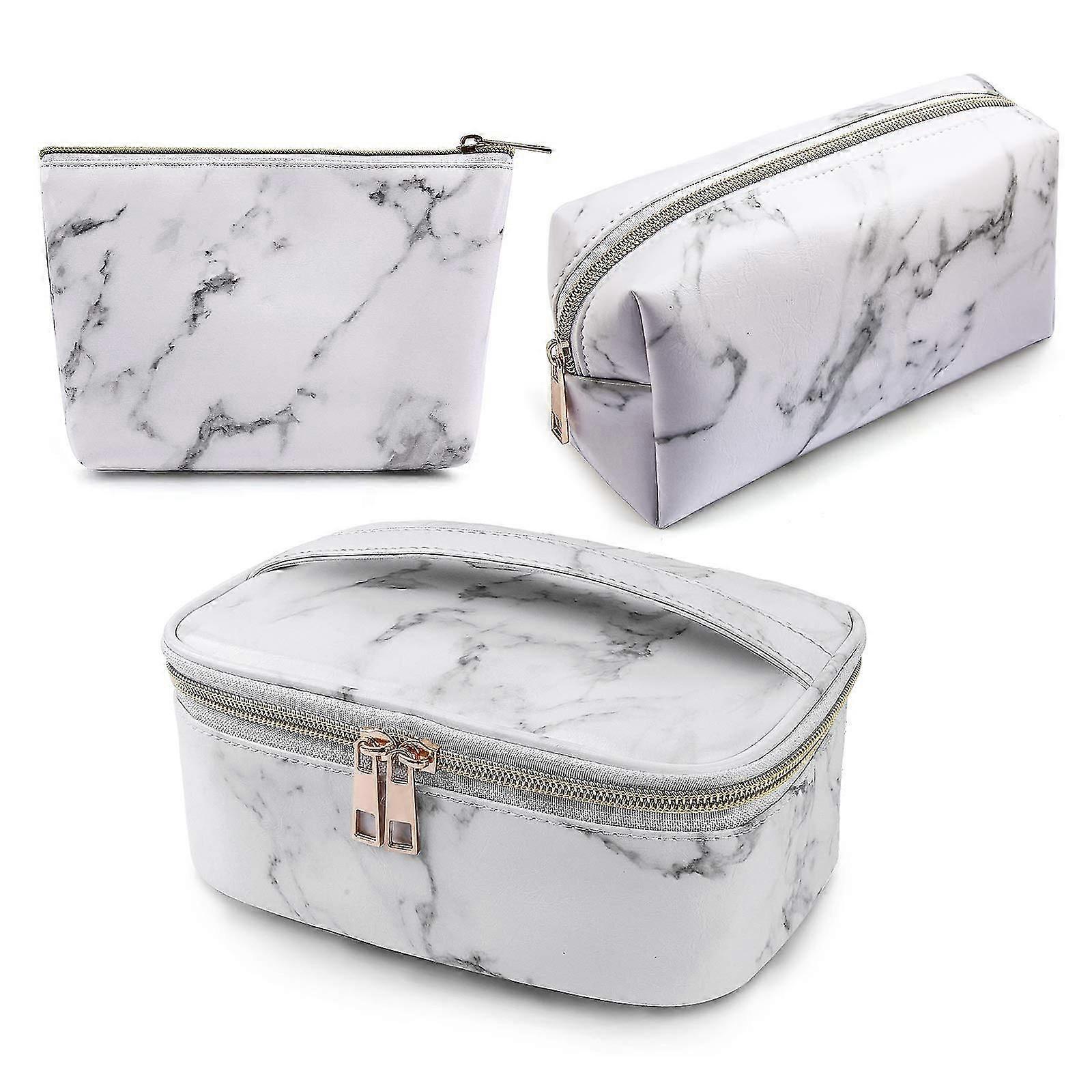 3pcs Make Up Bag Portable Travel Cosmetic Bag Waterproof Organizer Multifunction Case With Gold Zipper Marble