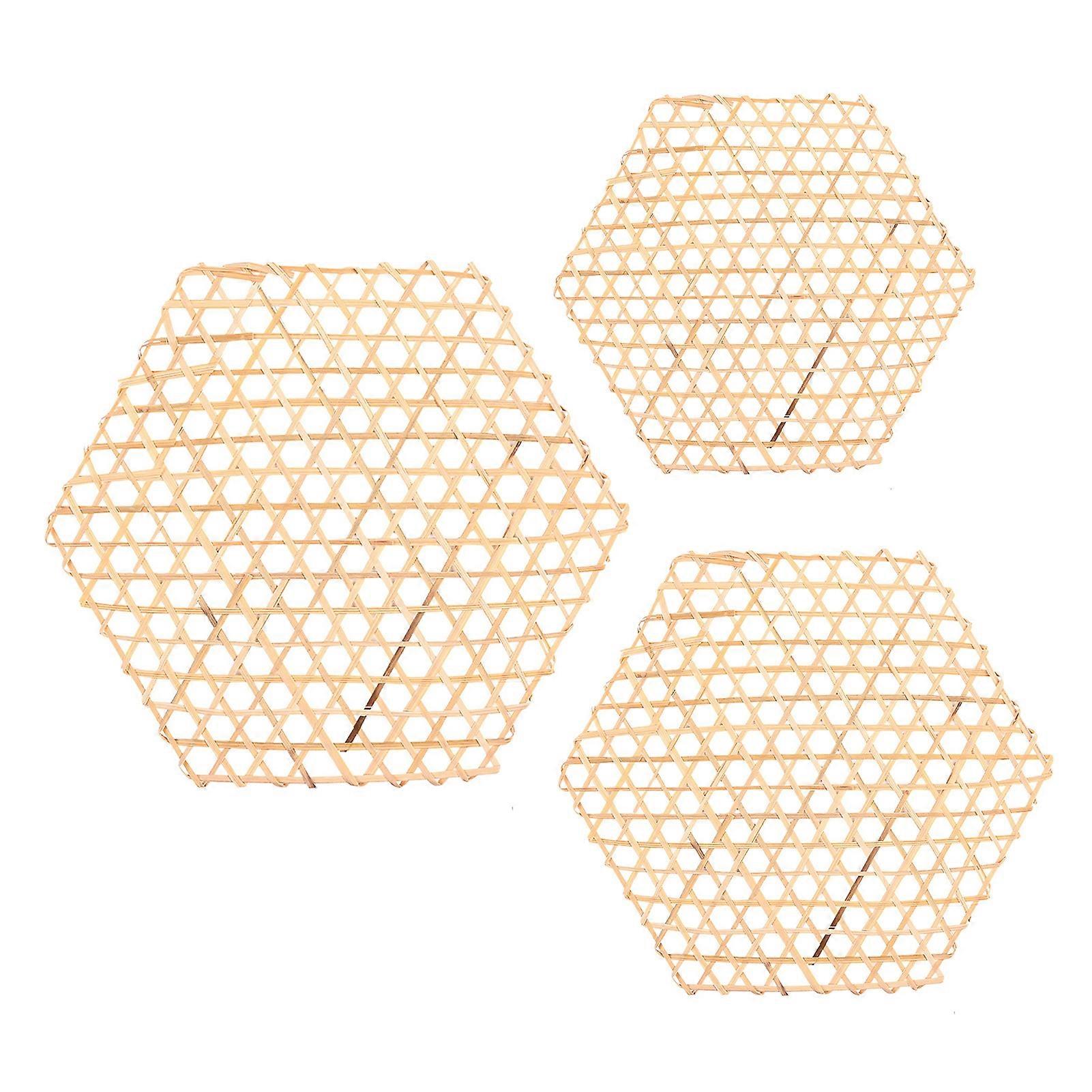 3Pcs Woven Bamboo Net Multi-purpose Scentless Natural Manual DIY Hexagonal Table Placemat for Home mengxi