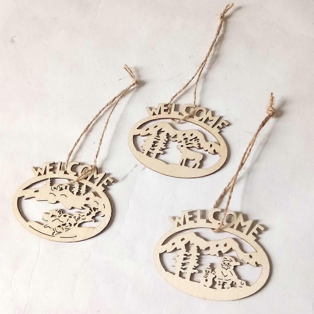 3x Wooden Pieces Santa Claus Wooden Hanging Embellishments Crafts Xmas Decor