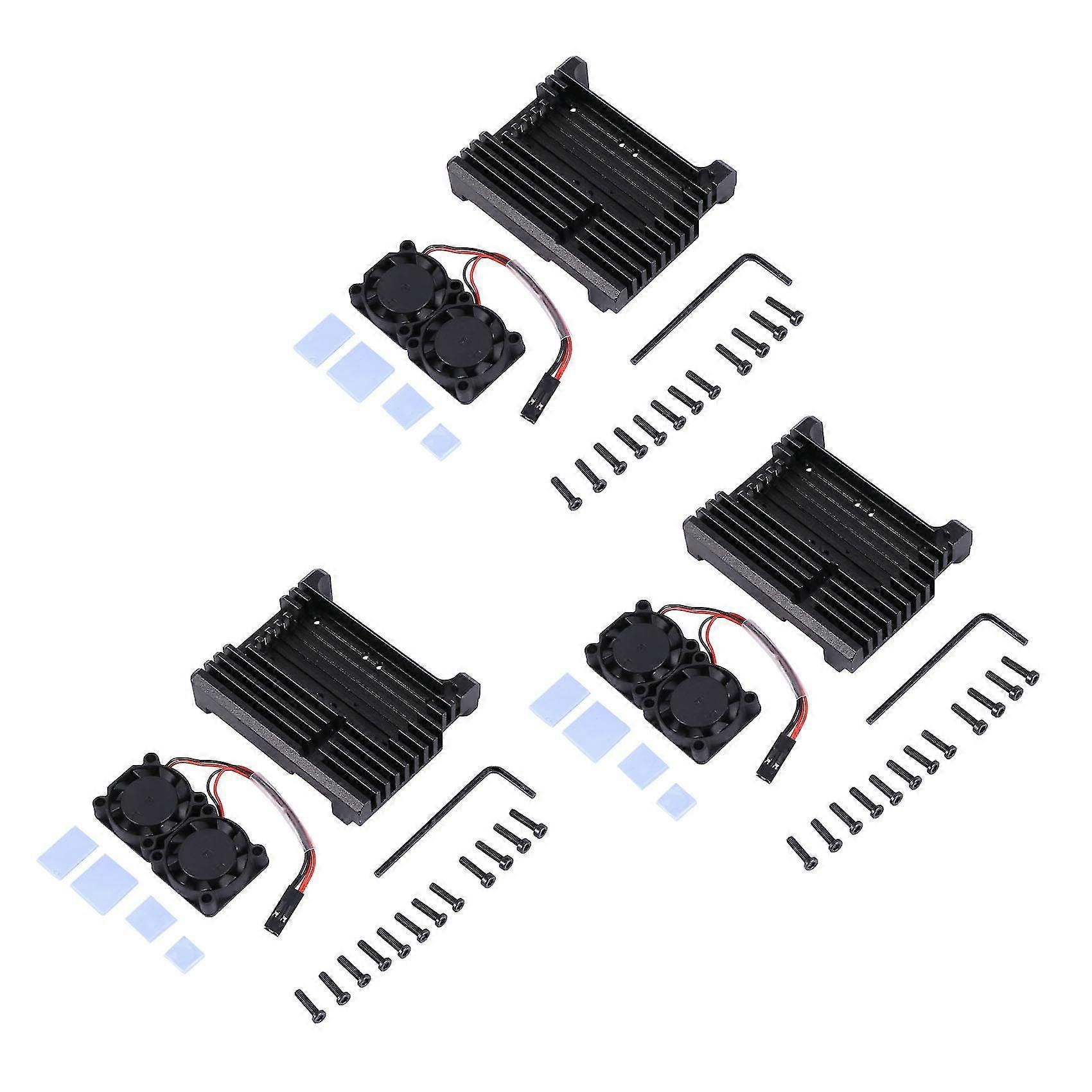 3x For Raspberry Pi 4 Aluminum Case With Dual Cooling Fan Metal Shell Black Enclosure For Raspberry