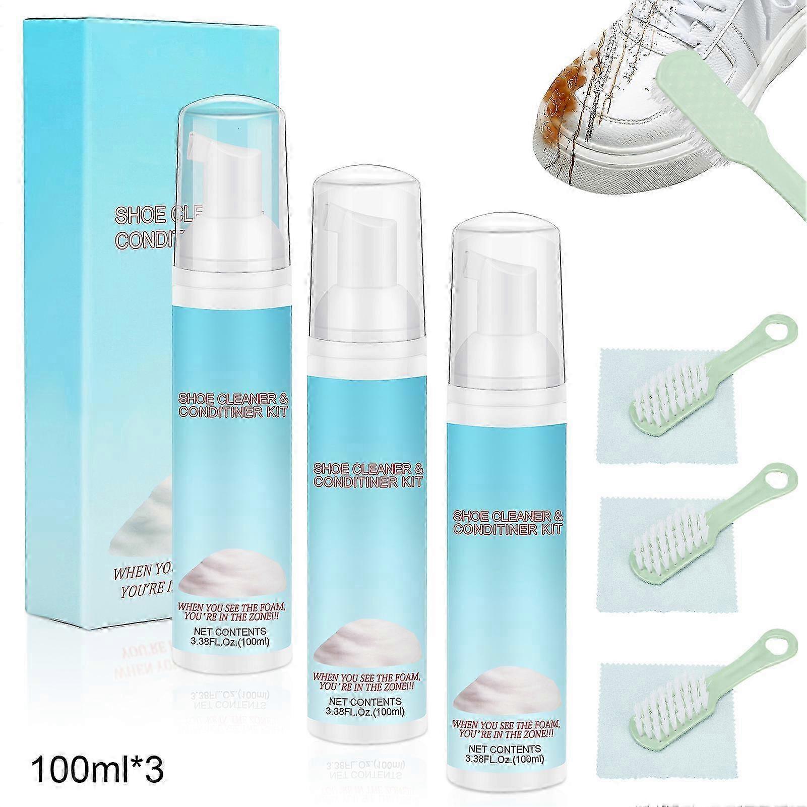 3x 100ml Shoe Cleaning Kit White Shoes Stain Remover Anti-Yellowing & Repair Cleaner Portable Whitening Agent - 1055365.01