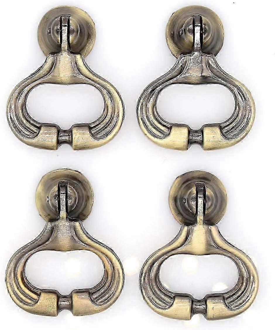 4 PCs Vintage Antique Brass Pendant Ring Pulls Drop Handles Knobs with Single Mounting Hole for Drawer Cabinet Dresser W