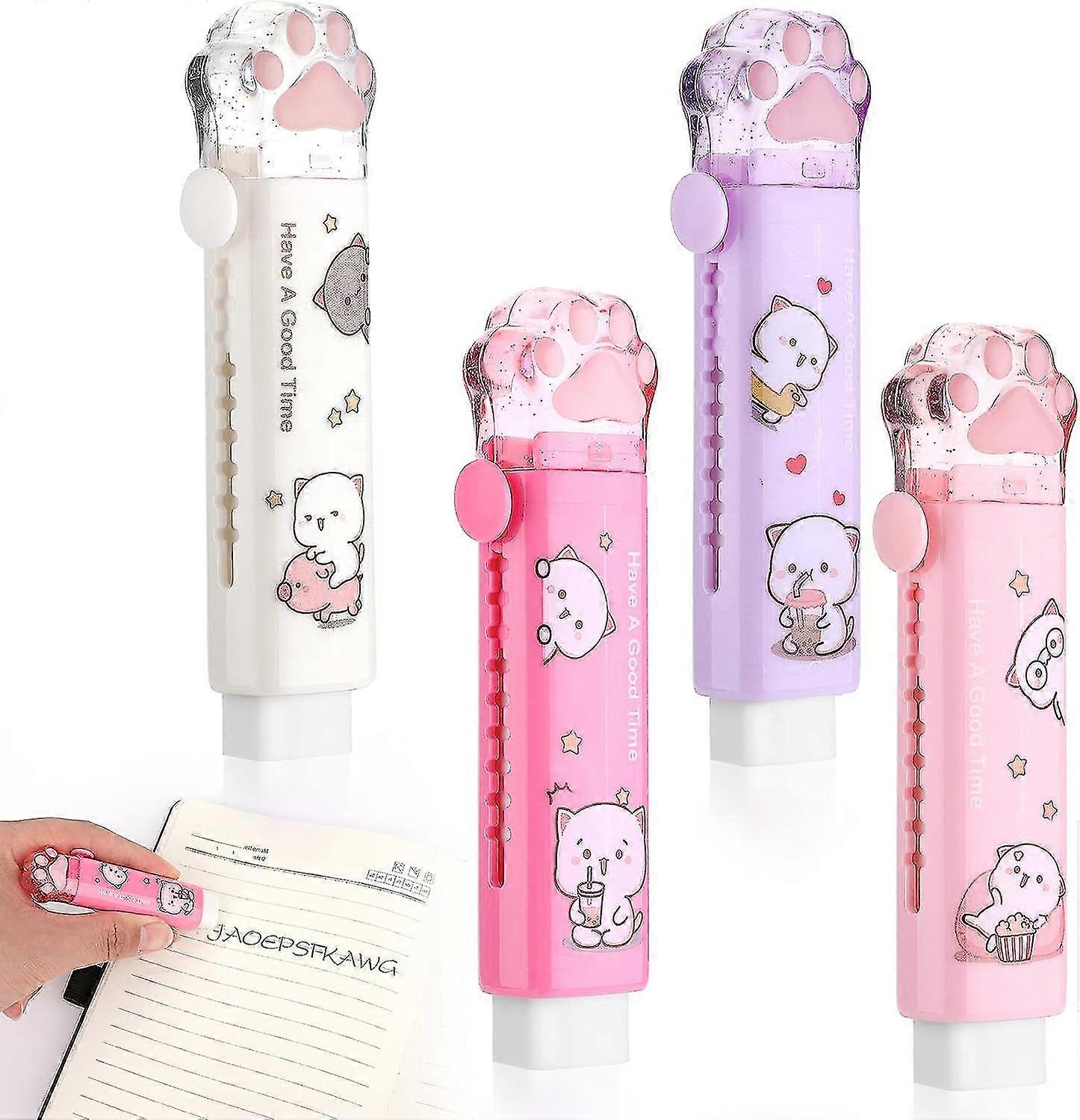 (4 Colors) Cute Cat Paw Erasers, 4 Pcs Retractable Cartoon Eraser For Kids Kawaii Push-pull Rubber Pencil Eraser Pen-style Erasers For Writing Drawing