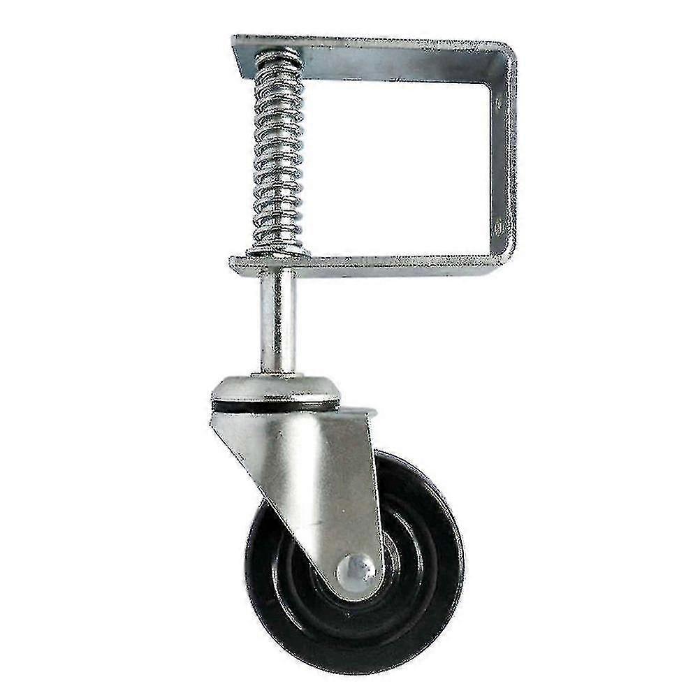 4 Inch Heavy Duty Rubber Mute Spring Loaded Gate Door Wheel Caster Spring Wheel Home Gate Door Roller Material: Metal and rubber. 4 inch Gate Caster with Adjustable Spring Bracket is designed to allow gates to open and close freely. ; It features a 50-60kg load rating and a spring-loaded clamp that acts as a when the caster is rolling over rough or uneven surfaces. ; It also features a universal mount for wood or metal gates. Heavy Duty spring-loaded gate casters adjust with surrounding terrain to maintain gate height throughout the opening and closing cycles. ; These rotating supports work equally well on level and uneven exterior surfaces such as asphalt, brick, concrete, dirt, grass, gravel and pavers. Colour: Black Size: 10cm Delivery Quantity: 1 Piece