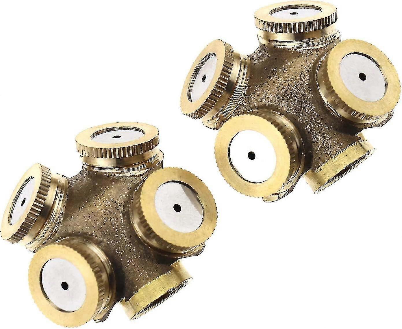 4 Holes Brass Misting Nozzles 1/4 Inch Water Hose Connector For Garden Lawn Farm Outdoor Cooling System(2pcs, Gold)