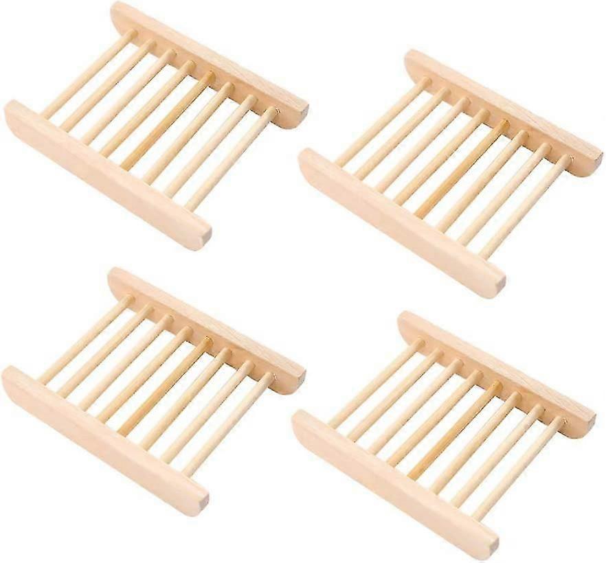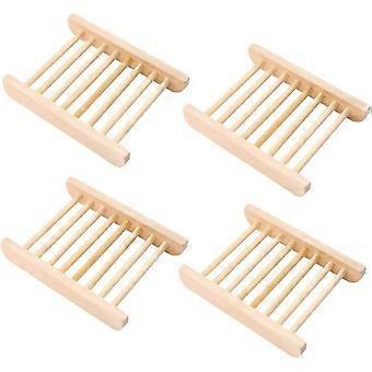4 Pack Natural Wooden Soap Dishes, Bamboo Soap Dish, Natural Bamboo Soap Dishes Soap Holder, Storage Holder, Soap Case, Strong Drainage Capacity, Easy