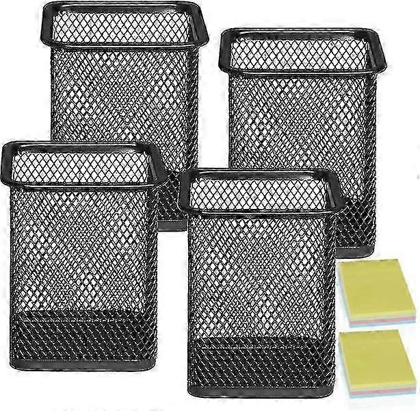 4-Pack Metal Mesh Black Square Pencil Holder Desk Organizers