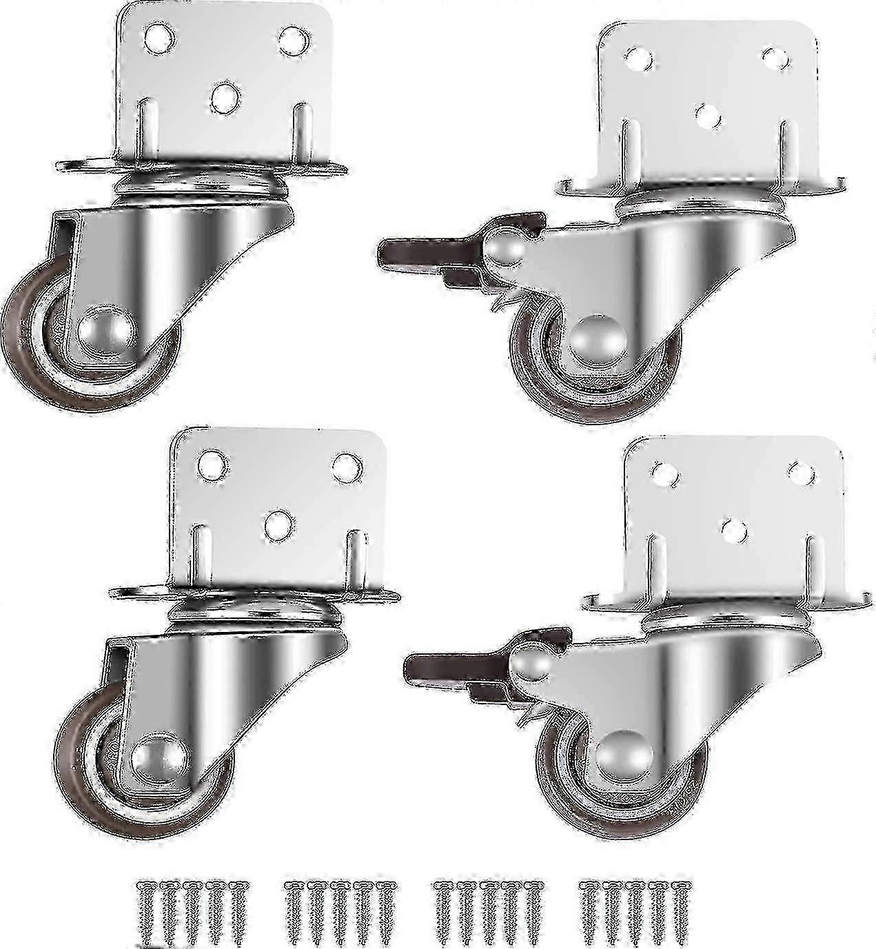 4 Pack Swivel Castors, Furniture Castors, Wheels With Brake, L-mounting Plate 25mm