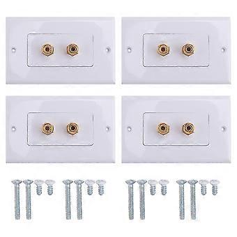 4 Pack Single Gang 1.0 Speaker Wire Wall Plate (Banana Plug Wall Plate) for 1 Speaker, White