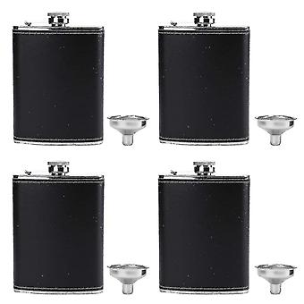 4 حزمة قارورة الورك للخمور، 8 أوقية الفولاذ المقاوم للصدأ غطاء جلدي مقاوم للتسرب قارورة جيب مع قمع