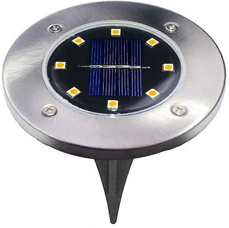 4 Pack 4/8 Led Round Solar Powered Solar Lights For Garden, Yard, Driveway, Underground Buried, White Light, 8 Led