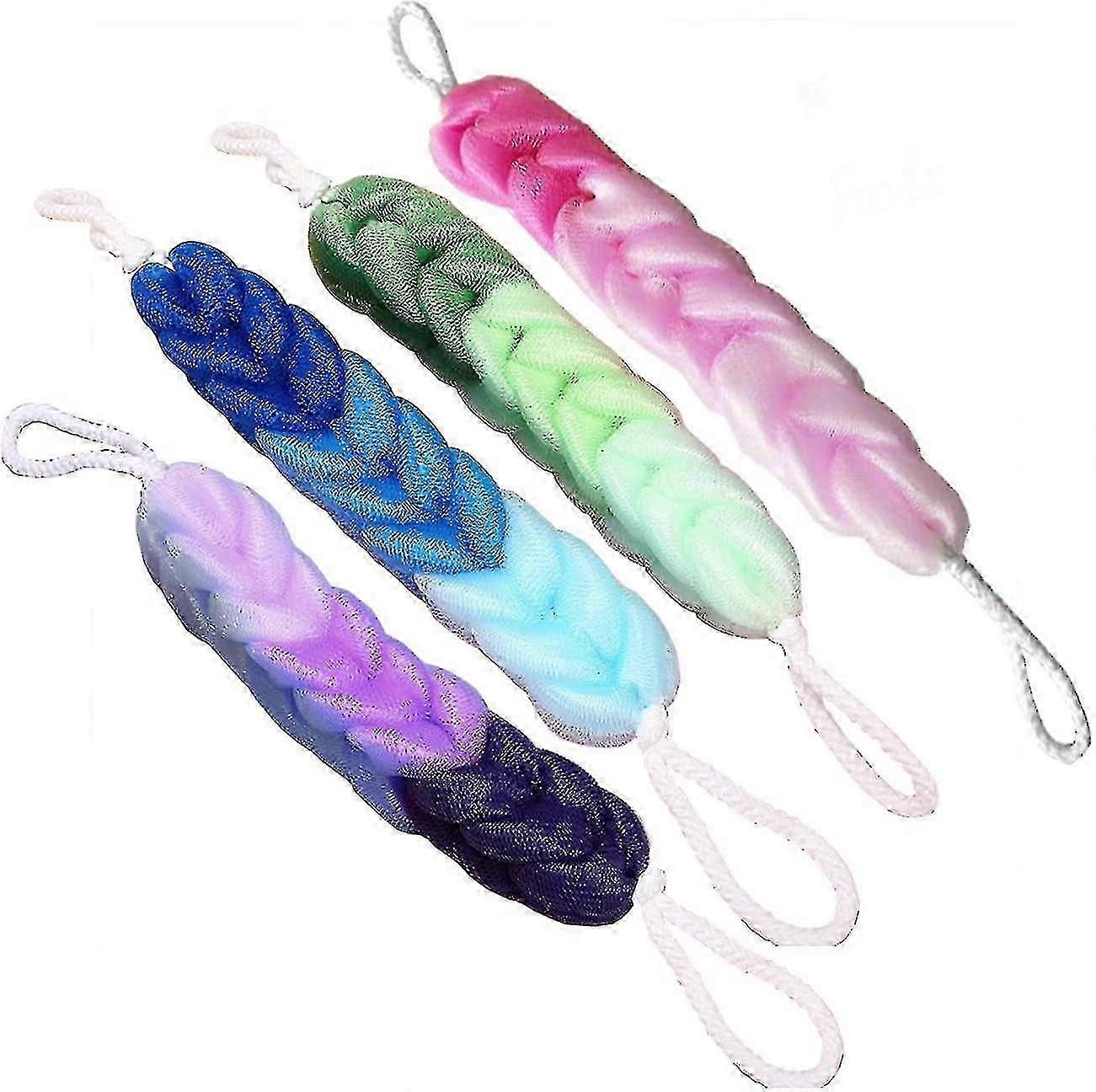 4 Packs Long Stretch Back Sponge With Rope Handles Back Scrubber Body Sponges For Bathing, Bath Shower Mesh Sponge Body Deep Cleaning For Men & Women