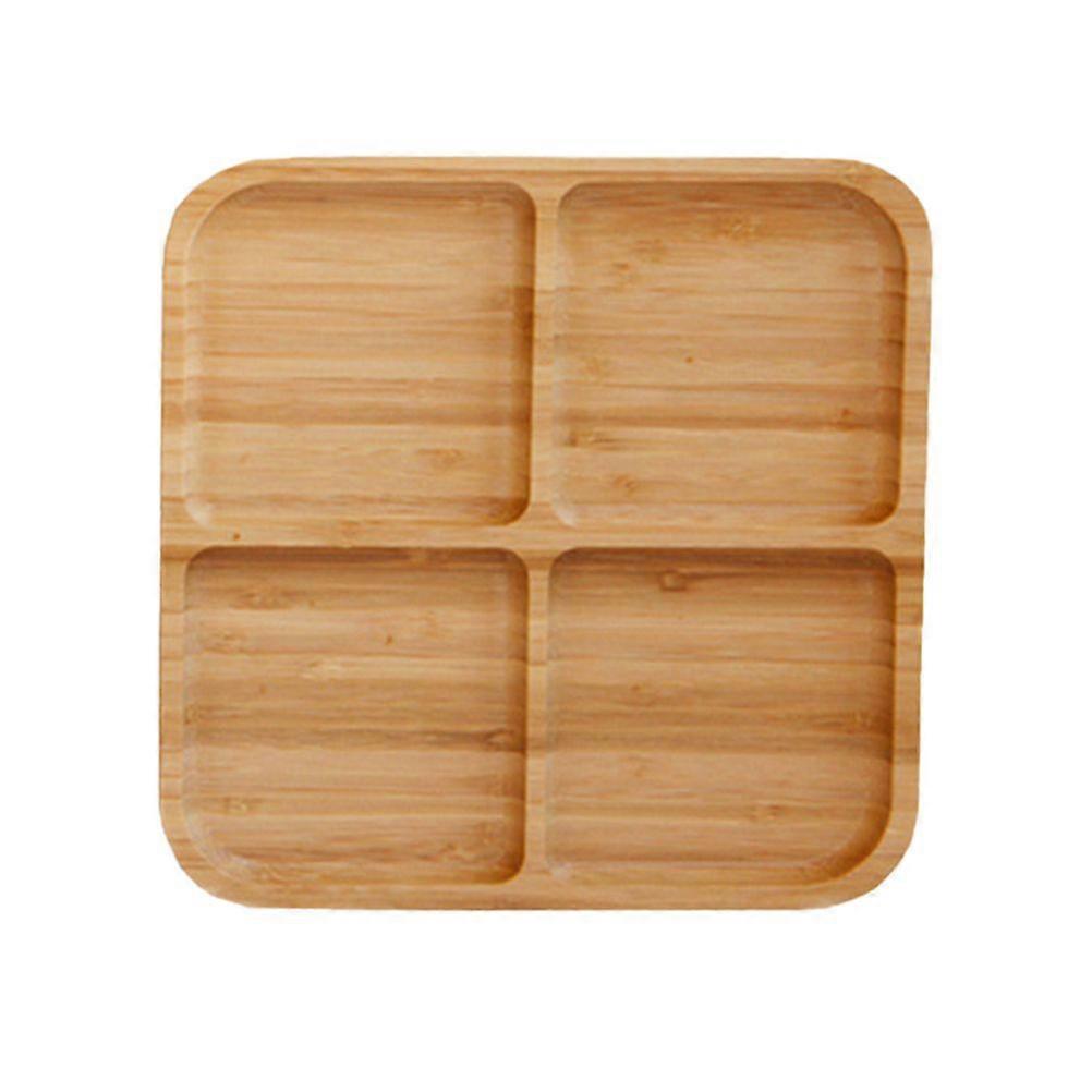 4 Grids Bamboo Snack Plate Snack Plate Fruit Bread Tray Dishes - Size S