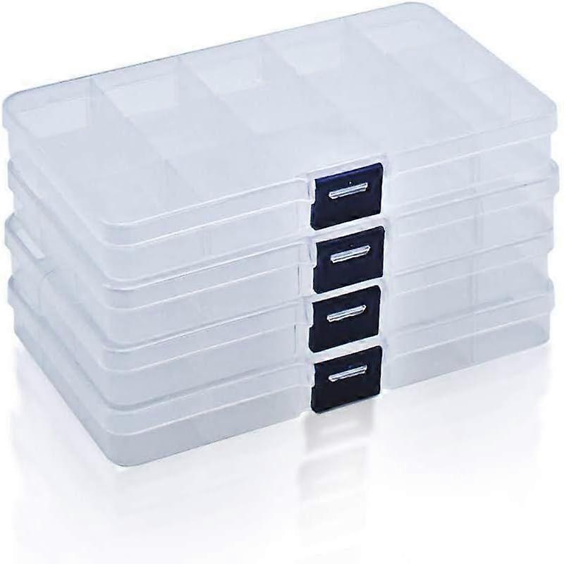 4 Plastic Storage Boxes with Lid, Storage Boxes with 15 Adjustable and Detachable Compartments
