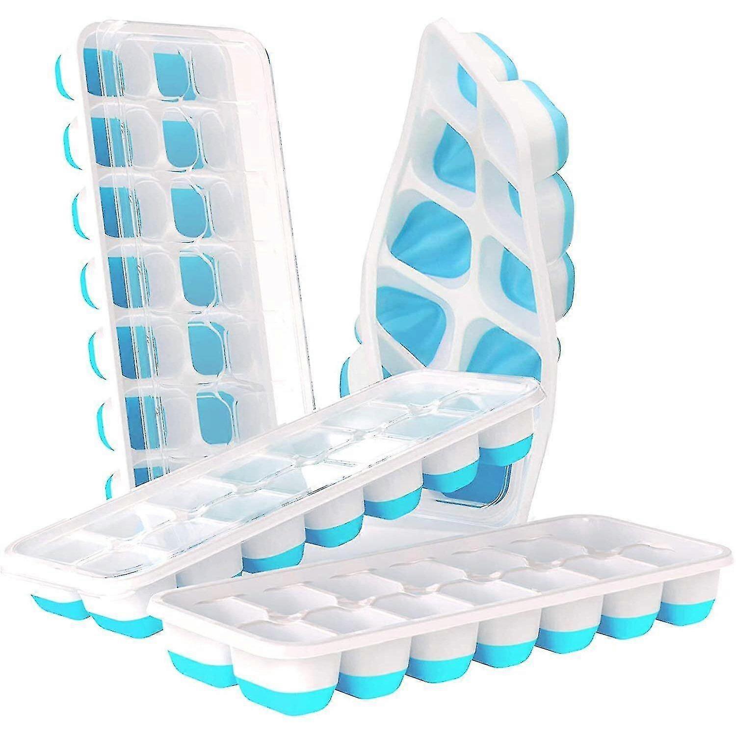 4 Ice Trays, Easy-to-release Silicone Soft 14 Ices, Freezer, Stackable Ice Tray With Lid(blue)